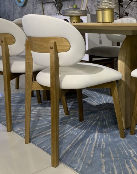 La Silla de Comedor Zebrano, con tapizado crudo y patas personalizables, es la esencia de la elegancia y adaptabilidad. Ideal para elevar cualquier comedor con estilo y calidad garantizada.