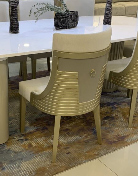 Renueva tu comedor con la Silla Julieth: elegante, cómoda y personalizable. Diseño exclusivo en taupe y champagne, ideal para un ambiente moderno o tradicional.