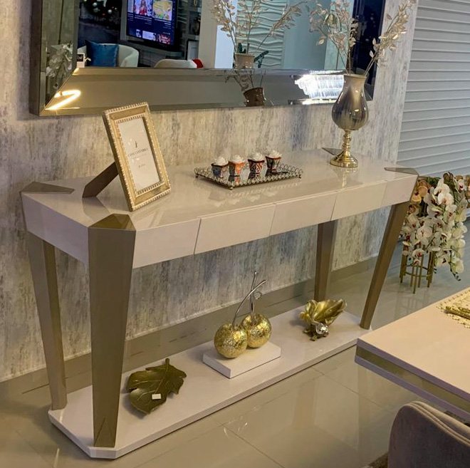 Eleva el estándar de tu decoración interior con nuestra exclusiva CONSOLA DIAMANTE. Esta pieza única combina la elegancia del blanco translúcido con toques de champagne, ofreciendo un diseño sofisticado adaptable a cualquier espacio gracias a su color personalizable. Con medidas estándar de largo de 1.80m y la opción de personalizar sus dimensiones, se adapta perfectamente a tus necesidades y espacio disponible. Fabricada con materiales de alta calidad, brinda durabilidad y un acabado impecable. Es ideal para quienes buscan incorporar un elemento distintivo y de lujo en su hogar u oficina. Con garantía de satisfacción, nuestra consola es una inversión en estilo y funcionalidad. ¿Listo para transformar tu espacio? ¡Adquiere la CONSOLA DIAMANTE hoy mismo!