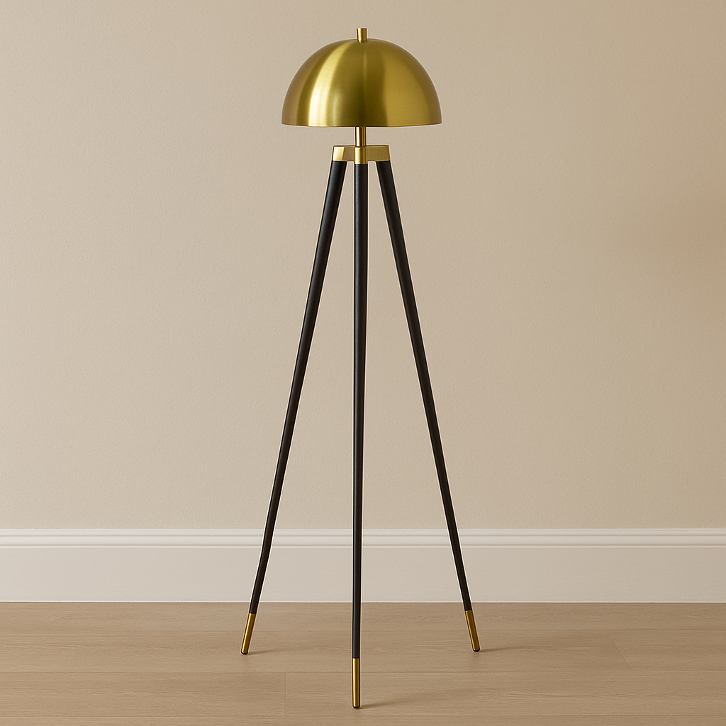 Cúpula Dorada es una lámpara de piso que destaca por su equilibrio entre elegancia y minimalismo. Diseñada para ambientes modernos y sofisticados, su imponente altura de 1.5 metros la convierte en una pieza escultórica que realza cualquier espacio. La estructura de trípode en acabado negro ofrece estabilidad y un diseño limpio, mientras que la caperuza metálica dorada de 34 cm de diámetro agrega un toque cálido, lujoso y contemporáneo. La base de 68 cm le da presencia sin saturar visualmente el entorno. Esta lámpara no solo ilumina, sino que transforma el espacio a través de su estética refinada, ideal para salas, rincones de lectura, estudios o áreas sociales que requieren una pieza con carácter y buen gusto.